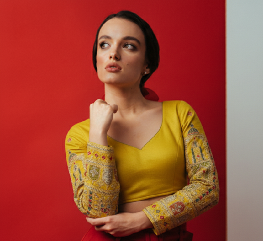 Bohemian Aqua Blouse with Colorful Patchwork and Bead Tassels