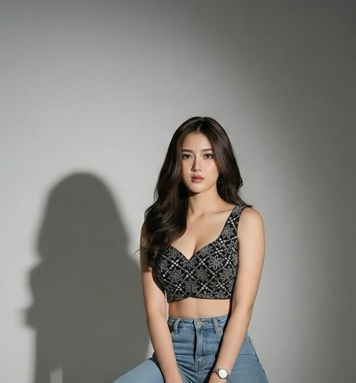 Chic Charcoal Grey Blouse with Wavy Silver Beadwork