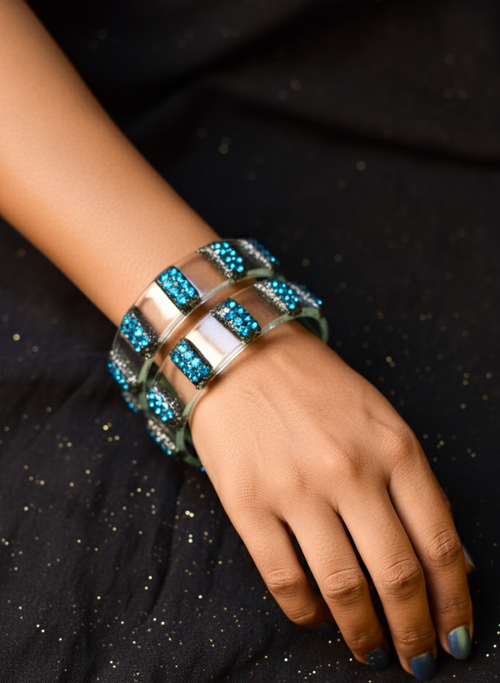 Bohemian Aqua Blouse with Colorful Patchwork and Bead Tassels